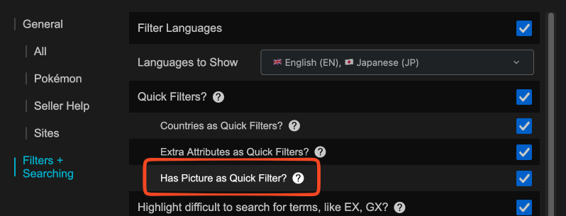 - Adds Quick Filters to Offers pages: Condition, First Edition, Reverse Holo, Languages, and more.